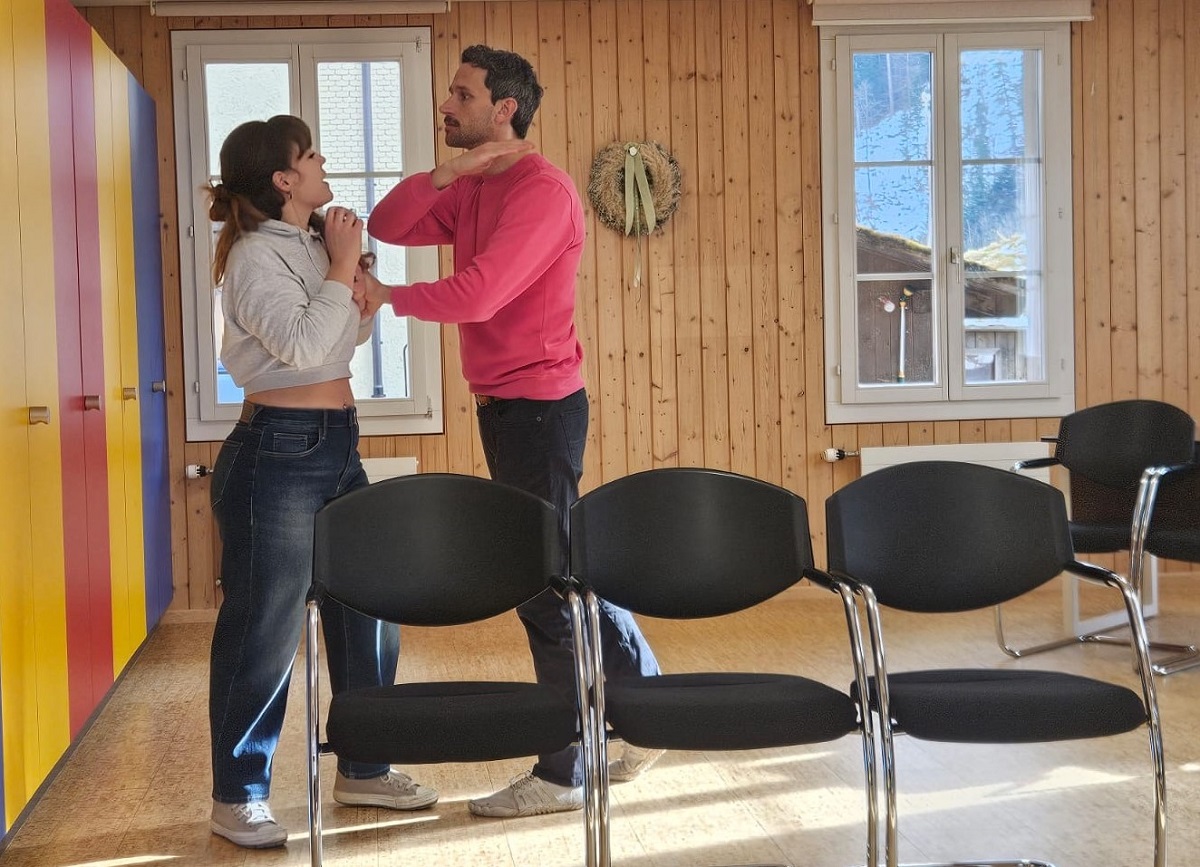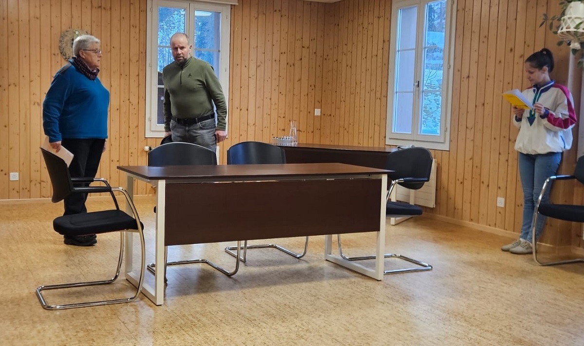 Der Text und die Bewegungen für das Theater werden auf der Bühne geprobt, die Strophen und Melodien der Lieder immer und immer wieder gesungen. Das bedeutet: das Konzert und Theater vom Jodlerchor Trub steht bevor…