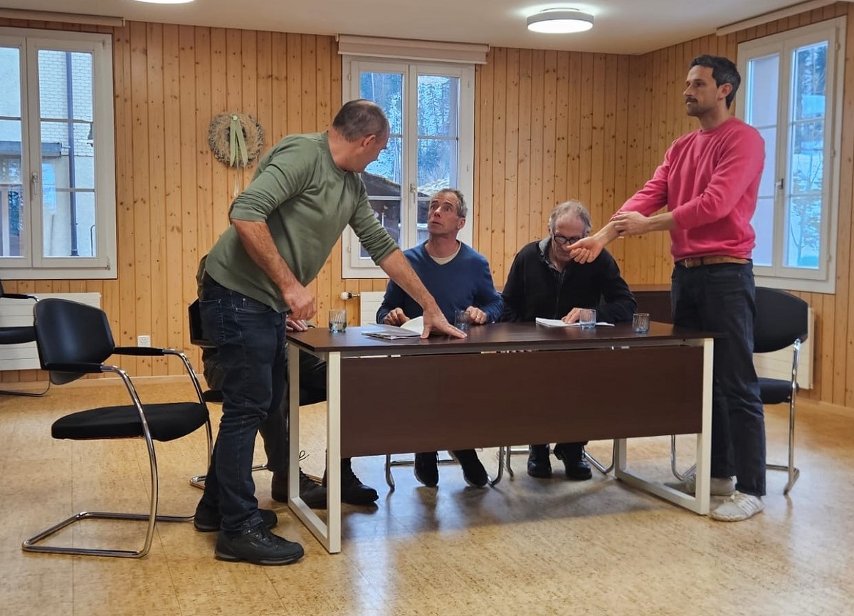 «Ds letschte Teschtamänt» heisst der Titel des diesjährigen Theaters. Ein lustiges, wie auch dramatisches Stück in drei Akten von Josef Brun. Hans Schmid hat Regie geführt und die sechs Schauspielerinnen und acht Schauspieler bestens auf ihre Rollen vorbereitet. Die Requisiten und Kleider passten ausgezeichnet in die Zeit vor 1970. Spannend und interessant von der ersten bis zur letzten Minute, welche mit einem Winzerfest und dazu ein Jutz des Jodlerchores endete. Der Lohn ihrer meisterhaften Leistungen war der grosse Applaus. Das Trio Aaregruess, bestehend aus Heinz Zaugg, Ruedi Gerber und Niklaus Steiner, spielte dann rassige Musik und bei einem Schwatz mit dem Tischnachbarn liess man den gemütlichen Abend ausklingen.